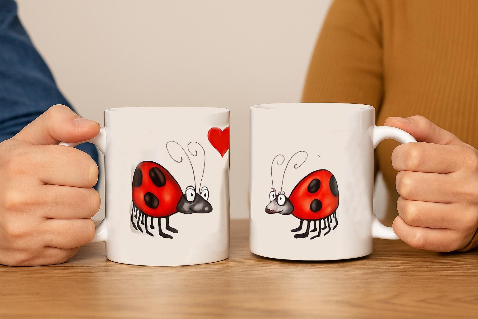 Η ζωγραφιά απεικονίζει δύο πασχαλίτσες που κοιτάζονται τρυφερά, προσφέροντας μια ζεστή αίσθηση αγάπης και οικειότητας.