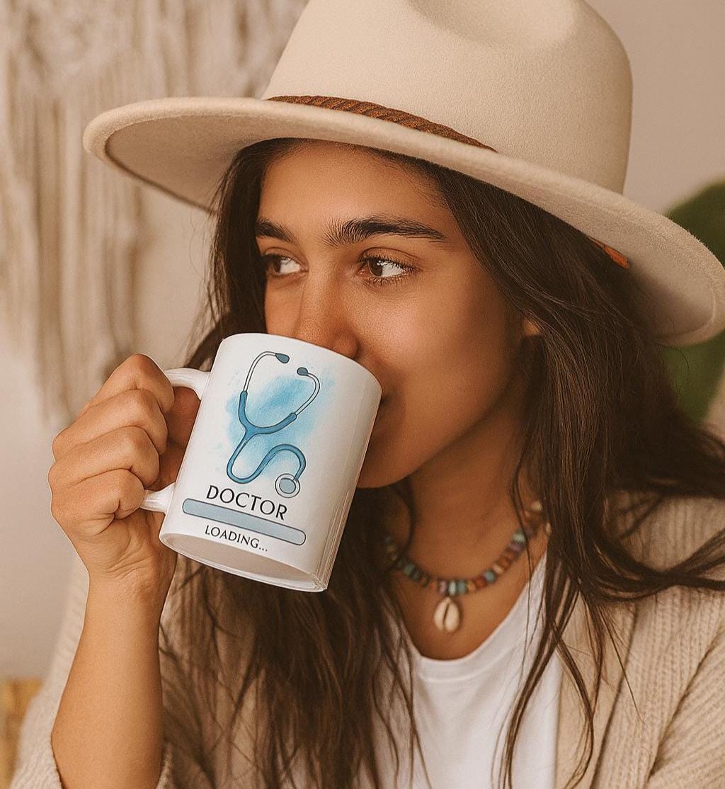 Λευκή κεραμική κούπα 11oz με σχέδιο watercolor "Doctor Loading" και στηθοσκόπιο – ιδανικό δώρο για φοιτητές Ιατρικής, μελλοντικούς γιατρούς και αποφοίτους. Το σχέδιο υπάρχει και στις δύο πλευρές της κούπας, ενώ στη μία πλευρά υπάρχει η δυνατότητα εξατομίκευσης με δικό σας μήνυμα ή αφιέρωση. Ένα ξεχωριστό δώρο για αναμνηστικό, επιτυχία εξετάσεων, αποφοιτήσεις ή απλώς για να δώσετε κίνητρο σε έναν αγαπημένο σας!
