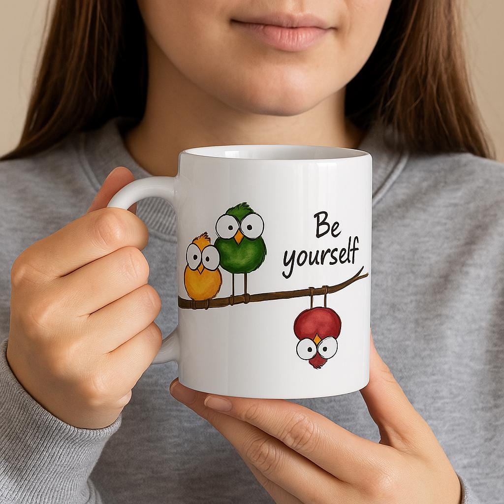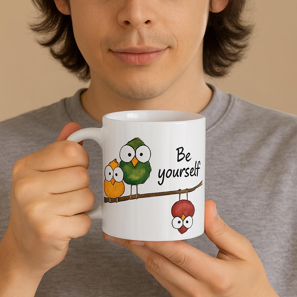 Με τη φράση “Be yourself” (Να είσαι ο εαυτός σου), αυτή η κούπα είναι μια υπενθύμιση να μένουμε αυθεντικοί και να χαμογελάμε κάθε πρωί.
